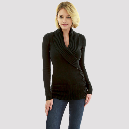 连身式 V 领长袖青少年保暖合身工作装可爱妮儿性感情人节厚实毛衣冬季女士运动鞋舒适女士毛衣软质毛衣艾米莉精品店系带背心